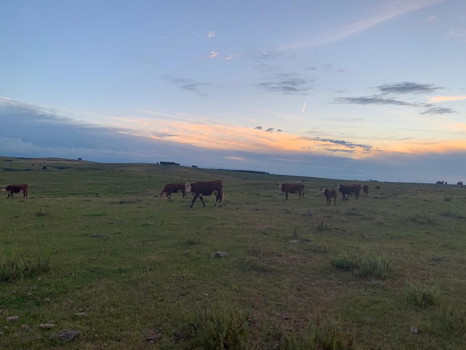 Ruig terrein, hellingen, gras dat geschikt is voor vlees, niet voor melk. We praten onderweg. Niet officieel, maar tussen het stappen en sturen door. De wind, de honden, de koeien in de verte. En af en toe stilte — zoals dat gaat bij mensen die weten dat praten niet altijd hoeft.