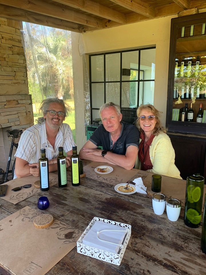 ’s Middags bezoeken we Olivos de las Ánimas, een olijfboerderij in dezelfde lijn: kwaliteitsgericht, transparant, gastvrij. De olie wordt gemaakt van Arbequina, Picual en Coratina olijven, binnen 24 uur geperst, koud verwerkt, duurzaam verpakt. Uruguay is nog een kleine speler op de wereldmarkt voor olijfolie, maar deze boerderij laat zien wat het verschil maakt: eerlijkheid, herkomst, en vertrouwen.