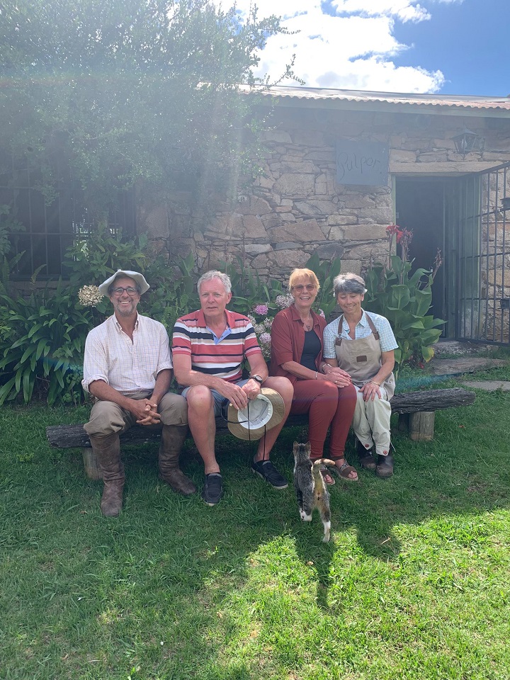 Onze laatste stop is een traditionele estancia, een boerderij van circa 100 hectare. Vleesvee, melkkoeien van het ras New Jersey, paarden, een moestuin, fruitbomen, zonnepanelen en eigen bronwater. Alles hier ademt zelfvoorzienendheid. Mario en Rebecca ontvangen ons hartelijk. De tafel staat al vol als we arriveren: olijven, brood, traditionele hapjes. Wat wij dachten dat de lunch was, blijkt nog maar het begin.