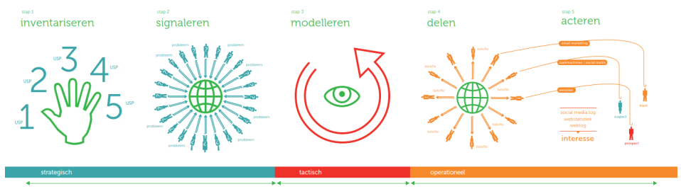 Eerst denken gaat op de eerste plaats over de vraag welk verhaal je wilt vertellen. Dan gaat het om zaken als: wie ben ik, wie zijn wij, waarom ben je veehouder of ondernemer geworden, hoe ziet je dag eruit, waarom is dat wat je produceert zo belangrijk en waarom doe je de dingen zoals je ze doet. En dan niet de holle, eigenlijk nietszeggende antwoorden, maar wat je daarin ten diepste roert.