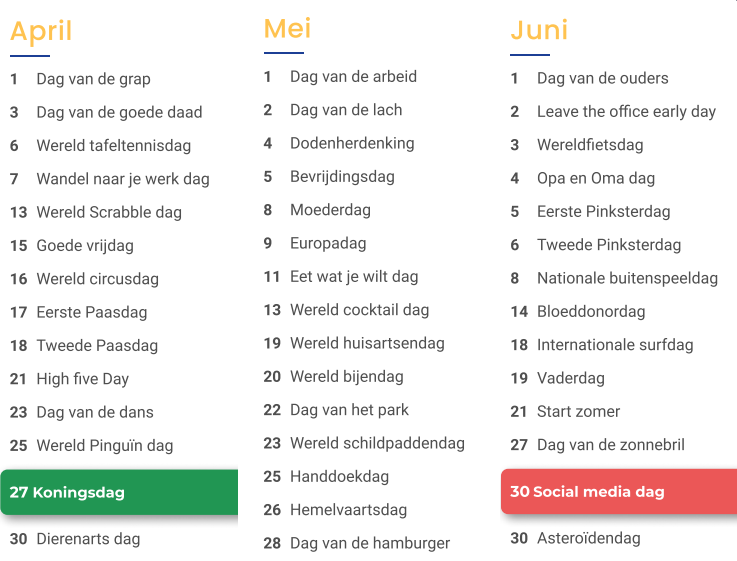Inhakers zijn een leuke manier om onder de aandacht te komen op social media. Neem bijvoorbeeld Koningsdag, Dag van de Lach, Moederdag en zelfs Social media dag.